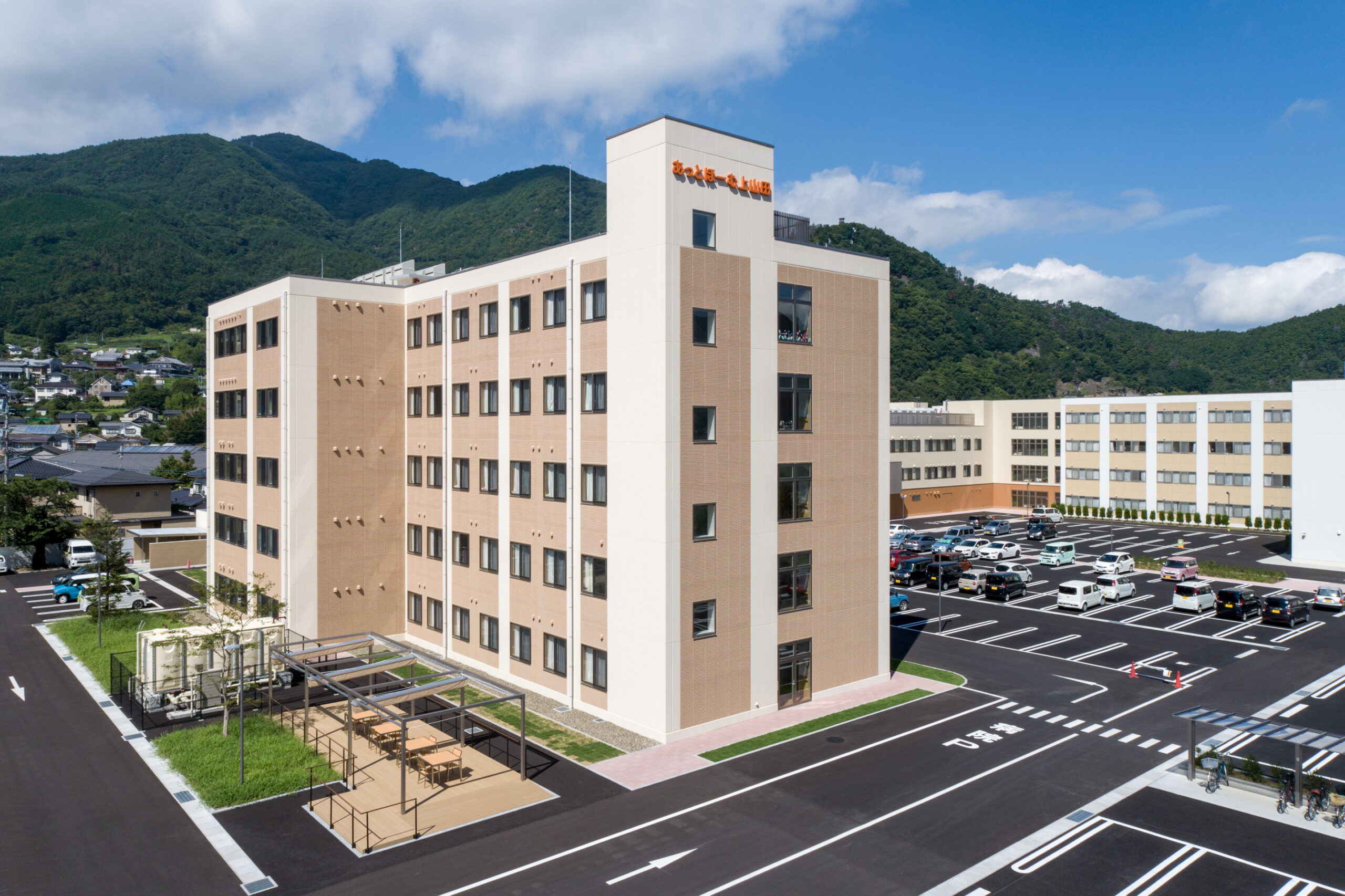 敷地内には外来受診や人工透析治療も対応可能な上山田病院や、住宅型有料老人ホームのあっとほーむ戸倉上山田温泉、居宅介護支援事業所、訪問看護ステーション、訪問リハビリの事業所があり、多方面から入居される方を支援いたします。